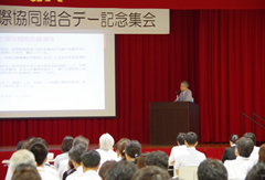 さらに、KJCの設立40周年を記念して、鹿児島大学の岩元泉名誉教授が「協同組合への期待」と題した記念講演を行いました。岩元氏は講演の中で、TPPの混迷と農協改革の本質について説明し、「生活と地域社会を守る協同組合の役割は大きい。協同組合には過疎地域でも暮らしが成り立つ地域づくりを期待したい」と強調されました。