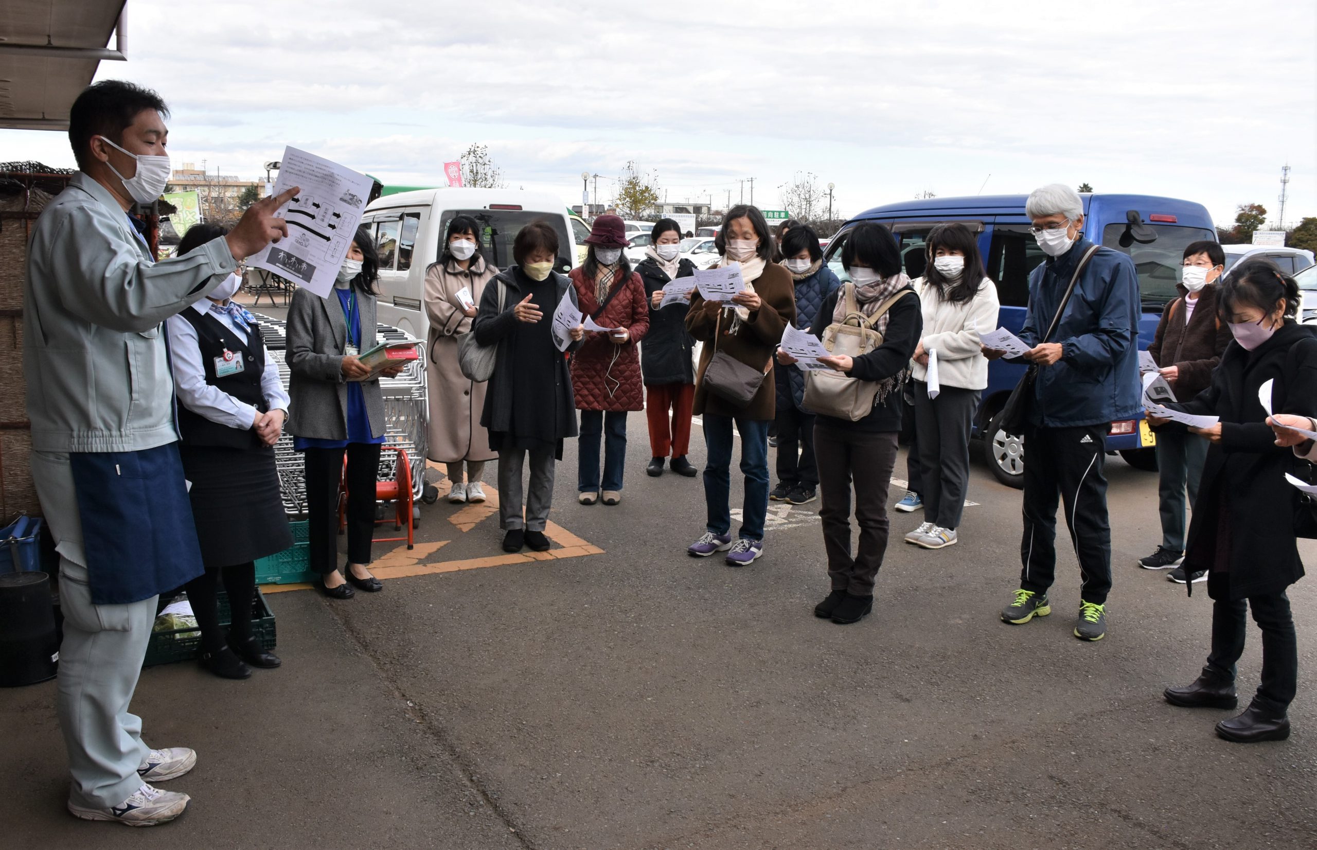 当日は、JAさがみ農畜産物直売所「わいわい市藤沢店」を見学した後、同JA組織経済部販売課の阿部励係長が、「野菜を価格で選んでいると、野菜が手に入らない日が訪れるかも?」と題して講演しました。その後、ユーコープは、「食DE健康」の取り組み紹介とJAさがみ農産物とのコラボレシピの紹介を行いました。
