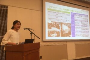 前田部長は、国際協同組合同盟(ICA)がすすめる世界的協議のなか、各地のワークショップの結果をもとにJCAがとりまとめICAに提出した協同組合のアイデンティティに関する提言を紹介するとともに、IYC2025に向けた全国段階での取り組み状況を紹介しました。また、協同組合間連携について、各種の協同組合は組合員や事業内容に違いがあってもいずれも地域社会を基盤とする点で共通しており、そのことが協同組合間連携のヒントとなるのではないかということを問いかけました。小島マネージャーは、協同組合間連携の連携事例として、地域課題解決の「実践」を進めるべく、県域で取り組まれたラウンドテーブルの実践事例を中心に紹介しました。