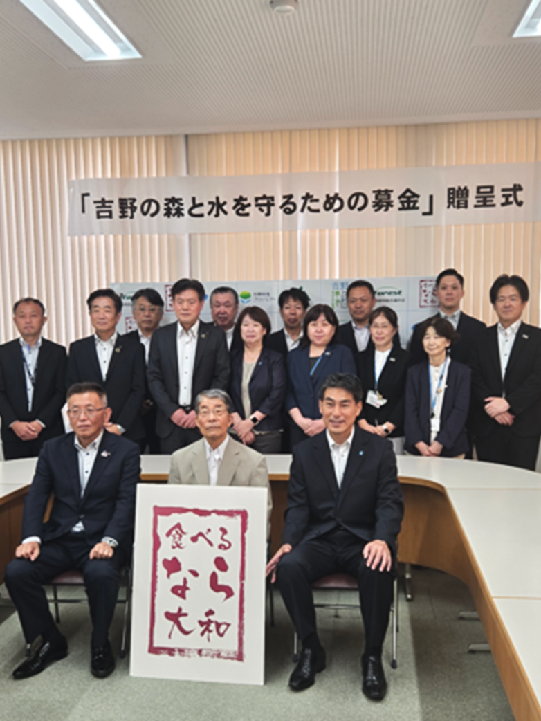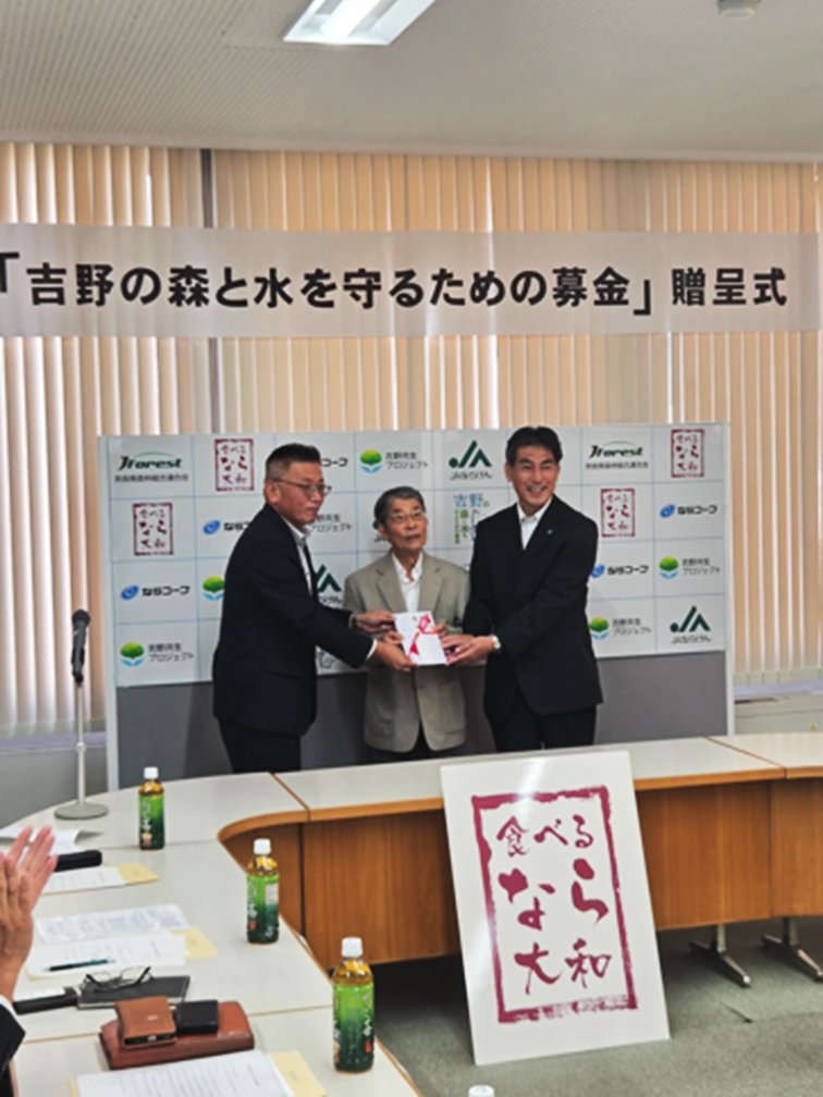 奈良県で吉野の森と水を守るための募金贈呈式