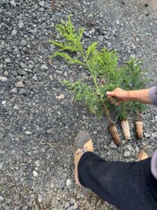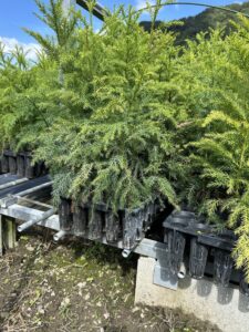 播種から約1年後、露地からコンテナに移植します。さらに1年後、コンテナから苗を抜き取り、梱包し、出荷します。