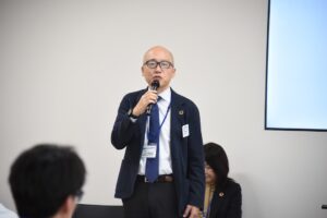 休憩を挟んだ後のグループワークでは、参加者が9班に分かれ、「自己紹介&私の組織紹介」および「協同組合間提携で生まれる可能性」をテーマに意見交換を行いました。JCAの小島マネージャーと丹後マネージャーが全体ファシリテーターとして各班の議論を促し、各組織での地域貢献活動や地域・社会の困りごとを踏まえながら、協同組合が連携して取り組めそうなプロジェクトについて、自由に話し合いました。