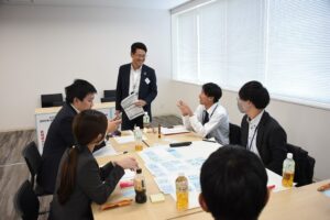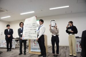 最後に班ごとにまとめたプロジェクトの発表が行われました。この中には、中山間地での土地活用や、災害時の衣食住ネットワーク連携など、静岡県ならではの【困りごと】をテーマにしたものもあり、参加者が協同組合間提携の可能性を実感できる内容となりました。