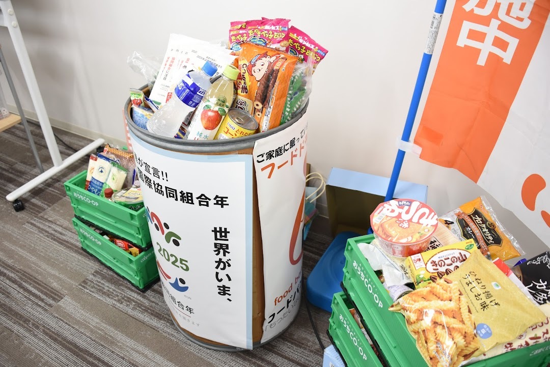続く講演2では、フードバンクふじのくに 事務局長・望月健次氏より、「フードバンクと食料支援」と題し、フードバンクの仕組みや生活困窮の解決に向けた支援の取り組みについて説明がありました。会場では余剰食料の受付も行われ、参加者は持参した食料を寄せ合い、フードドライブ活動に協力しました。