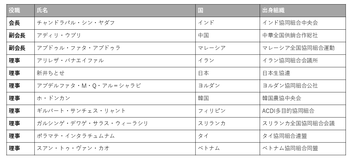 2016年からICA-AP理事を務め、今回も理事選挙に立候補した日本生協連の新井会長(JCA副会長)は、12人の候補のなかで第4位の155票を獲得し、地域理事に再選されました。