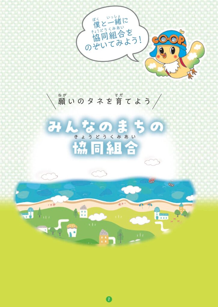 ナビゲーターの「ソラハネ」と一緒に、暮らしの中にある「願いのタネ」を探しながら、協同組合がどのように生まれ、育ってきたのかをたどっていきます。 本パンフレットは、小学校中・高学年以上を主な対象として、「協同組合って何だろう?」を身近な暮らしの視点から学べる学習資材です。子ども向けのやさしい表現を用いていますが、協同組合に初めて触れる大人の方にもおすすめ の内容になっています。 イベント、出前授業、親子向け学習会、協同組合理解の導入資料など、さまざまな場面でご活用いただけます。